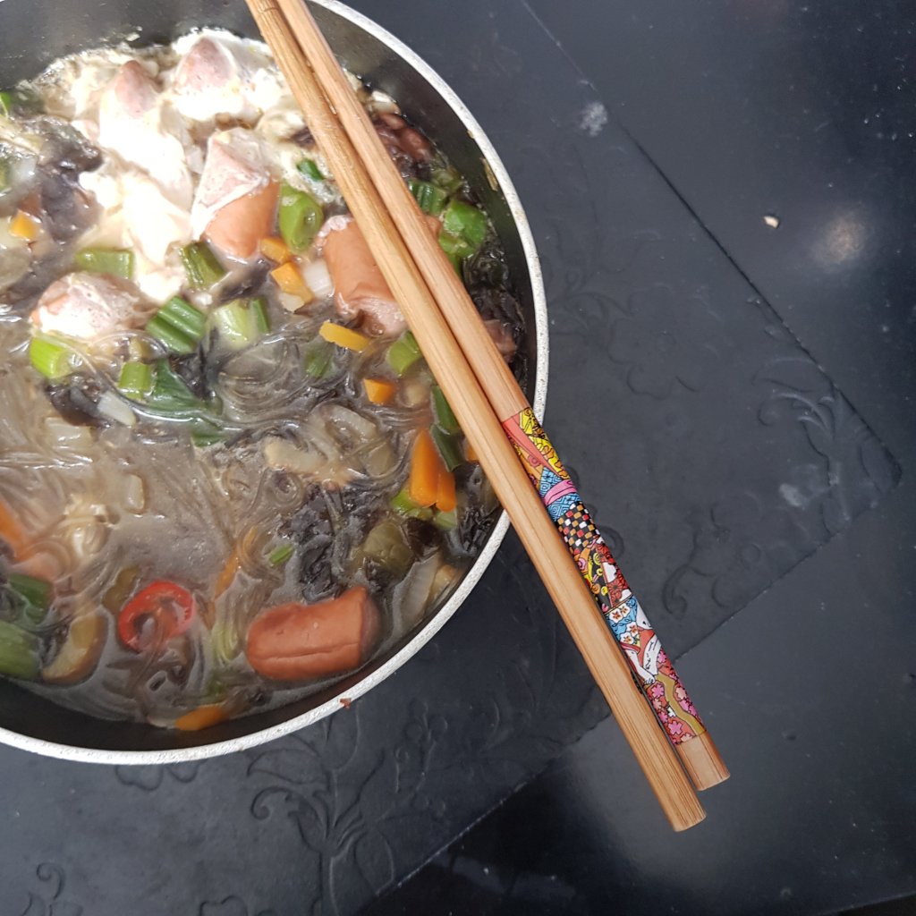 肚子餓,就先開始吃午飯好了。喜歡酸酸辣辣的湯。酸菜,蘿蔔,洋蔥,熱狗,紫菜,冬粉,味噌,醋,糖。 應該算健康的午餐搞定啦!啊,還有蛋