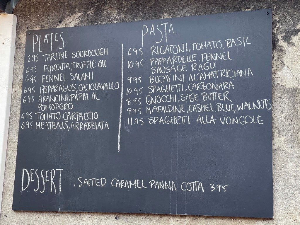 這餐我們花了一共€42.85,包含了兩杯 house wines。 是不是真的便宜! 我個人胃不是很大,其實3盤吃下來是很飽很飽很飽,但是不是吃不完的。這家 SPREZZATURA 有兩家店,一間在 rathmines , 一間在 Camden market。 我們去的是 camden market。 因為疫情的關係,所以他們室內目前是關起來的,而正門口也沒得進入。 如果你要來這一家,你就必須從旁邊進