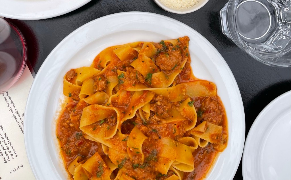 三道菜面裡,就是只有這個是有肉在裡面。 pappardelle 就是寬麵條,這類麵條經常會搭配比較強烈濃郁的醬汁。其實看老外菜單還蠻容易的啦,他們就會把食物的名稱寫上去。所以只是這樣看就是 茴香香腸寬麵條。 這道是3道裡面我最喜歡的,原因也非常簡單啦, 就是我喜歡比較硬/彈/寬大的面,醬汁裡面也有辣味。 他看起來好像一般的番茄醬汁意大利面,可是這道的味道會更上一層次,茴香在裡面起了很大作用,中和了肉味,和番茄汁酸味一起,就是互相都不會搶了彼此的風采。