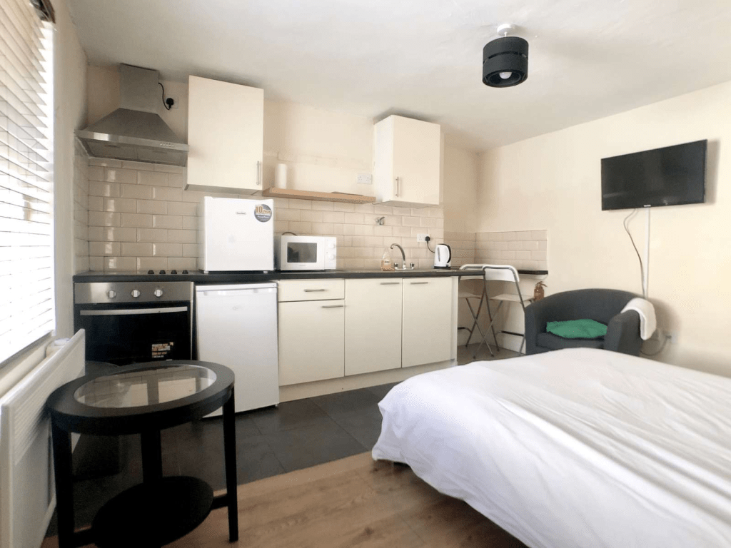 再還有一種是 STUDIO。 就是一個空間裏有床,厨房,沙發等等,只有浴室是隔開。(上圖)